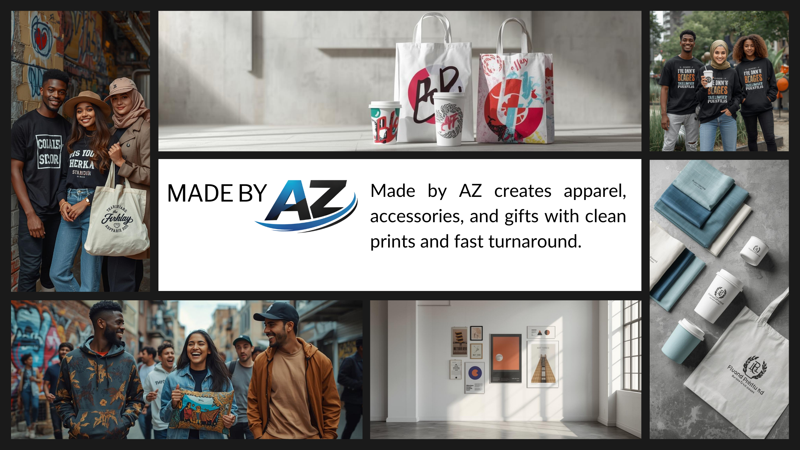 Made by AZ makes custom printing simple. You bring the idea. We handle the print and ship it to your door.